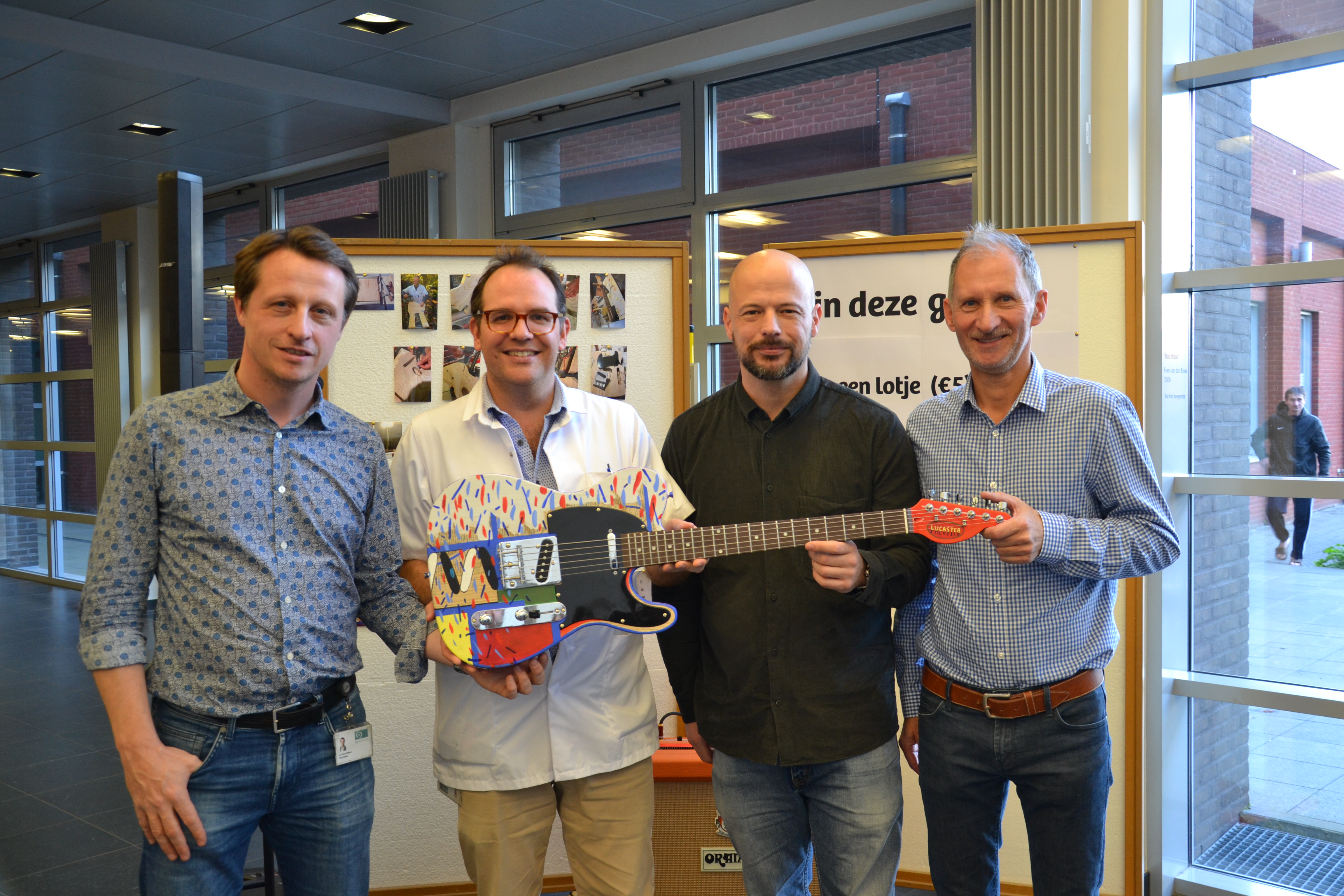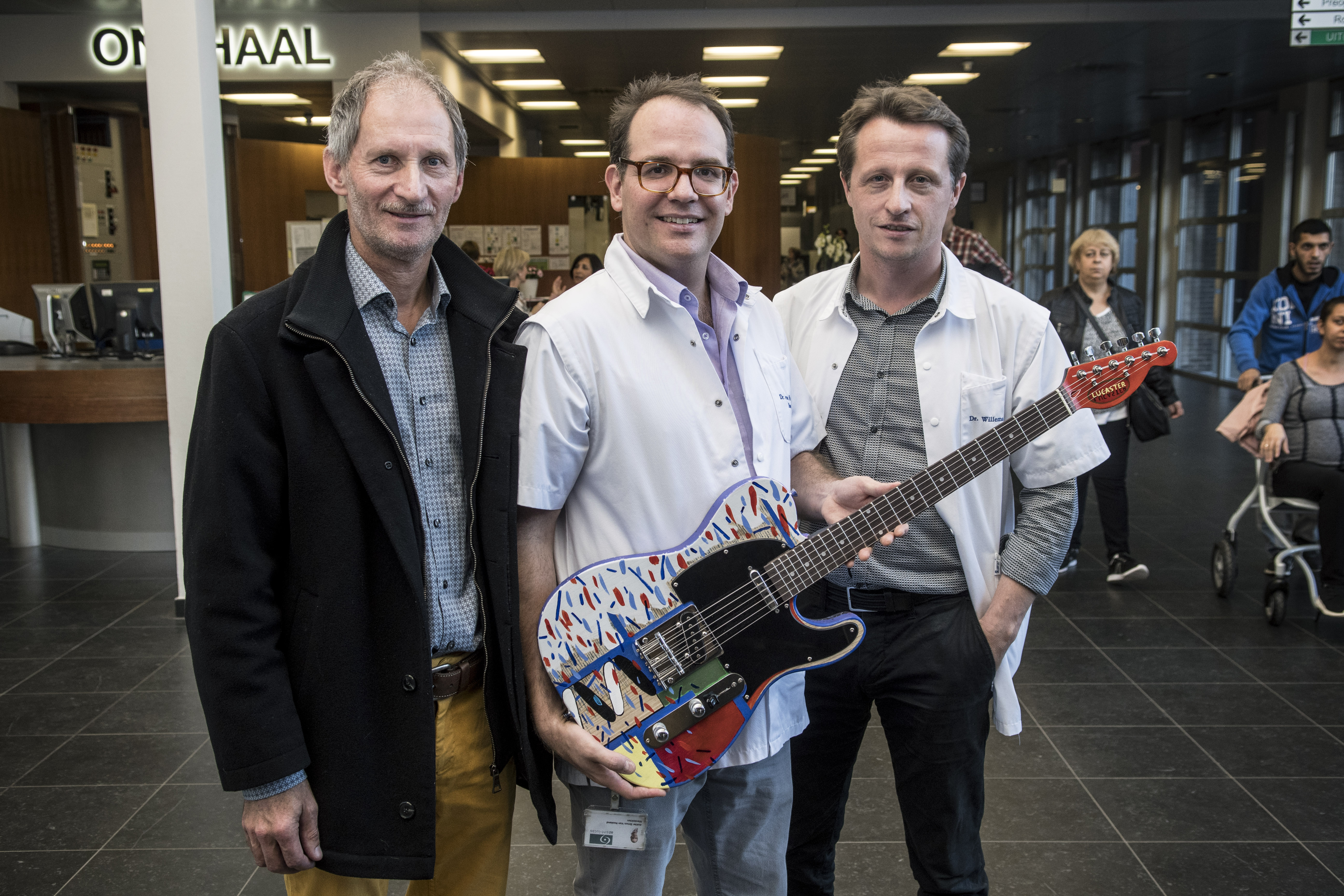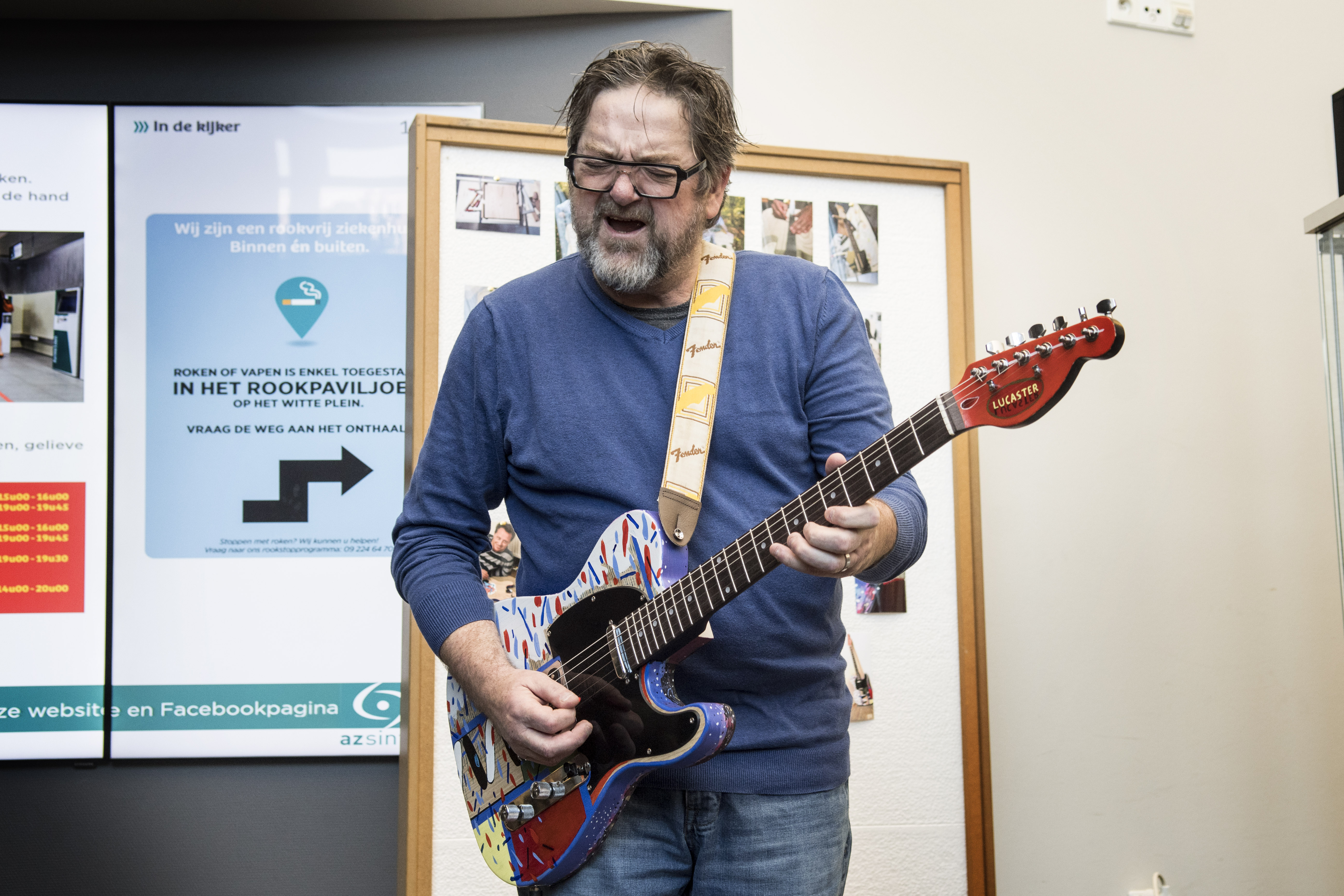 De gitaar was te bewonderen in de inkomhal van AZ Sint-Lucas en geïnteresseerden konden voor 5 euro een lotje kopen.